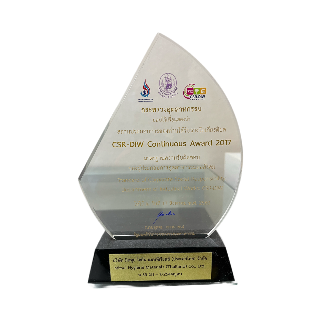 We have received CSR-DIW Continuous Award for 9 years, since 2011 till 2019.
